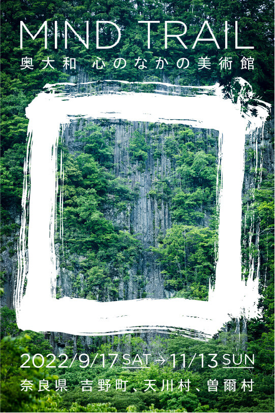 「心のなか」という形の無いテーマをデザインで表現するにあたり、まずはクリエイティブを見る人の共通認識をつくろうと考えました。それが書です。自然と人の間に位置する、行為としてのアートをメタファーにしています。この書は「◯△□」と回を重ねるごとに、MIND TRAILとともに変化してきました。禅僧 仙涯義梵和尚の残した書「◯△□」によると、「□」は囚われている人の心を表しており、解き放つべき心のタガでもあります。このクリエイティブが本芸術祭の入口となり、自分に内在する自然を旅するきっかけとなることを願っています。(デザイン:合同会社オフィスキャンプ、書:坂本 和之、写真:西岡 潔)